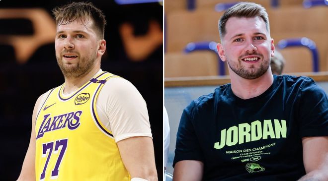 美媒NBA Memes对比东契奇身穿湖人球衣的照片和在欧洲看球的照片,配文:“卢卡·东契奇在美国打球时增重,在欧洲度过他的休赛期时减重,这并非巧合。”